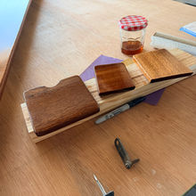 Wanting to get the coaming boards mounted onto Biscuit's molded fiberglass cockpit coaming, I grabbed the time I have left today to sand and apply another coat of varnish to the outboard side. I sanded both boards with 320 grit paper, removed a bulk of the sanding dust, and then followed the prep with an acetone wipe down. In the process I also managed to sand three smaller components, as well as the original companionway slide hatch trim. I was curious to see if I could recover the exterior athwartship rib, but after sanding and applying a coat of varnish, this piece will require a new fabrication to replace it. Back to the shop tomorrow.