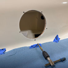 I began by fitting the deadlights, aligning and tapping them off to secure their locations in the open space of the cut-out. Through the fastener holes, I pre-drilled first with an 11/64" bit, removed the deadlights, and finished with a 5/32" bit - the size bit for taping for #10-24 screws. Next, I lightly abraded the perimeter surface of the opening with sandpaper and then vacuumed up the drilling and sanding detritus. I laid out the new deadlights, wiped the surface of cabin sides with acetone, and applied Sikaflex 291-lot to the inner face ring of the deadlights. I pushed the first fastener through one of the five holes, aligned it with its corresponding hole in the cabin side and finger threaded it into position, leaving roughly an 1" of threads exposed. I repeated this process with the remains four machine screws per deadlight. Having the 5 machine screws partially threaded into position, I then pressed the deadlights firmly onto the cabin sides, seeing good squeeze out around the circumference of the deadlights. I went down below and applied additional Sikaflex to the space between the deadlight inner ring and the cabin sides' port opening. Next, I screwed the fasteners in tight, ensuring the deadlights were snugly into position and seeing good squeeze out around their circumference. Back down below, I applied a ratchet wrench to tighten the washer-backing nut combo. Finally, I cleaned up all squeeze out, completing the installations.