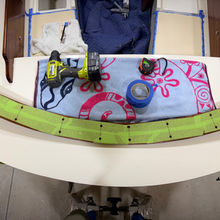 Back at home, I moved to work on the interior fiddles for the starboard v-berth and quarter berth. I cleaned them and sanded them fair to remove old bedding compound, paint, and grime, After cleaning them with acetone, I applied a thinned coat of varnish to soak into the wood grain. A couple more varnish coats will complete these pieces.