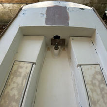 There is a through-hull that is to be eliminated from the port seat vertical surface - an outlet for the bilge pump. Water was taken from the bilge and emptied into the cockpit, allowing the scuppers to take the water overboard. The location of the through-hull is a bit unsightly, and the process for eliminating contents of the bilge a bit messy, so it will be removed and glassed in. The new bilge through-hull will be located on the port topsides and will be bronze in material.