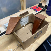 As I had done the day prior on the port coaming return block, my effort today was on the starboard side of Biscuit's deck. I trimmed the fresh blank of mahogany down to a point where I could then begin to transfer the compound curves of the deck and cabin to the blank itself. Again, a highly iterative process to finally land at the desired dimensions of the very unique coaming return block. The process was identical to the port return block, including numerous trips from shop to paint booth and back to the shop for continued work on shaping the block. All was proceeding very well, and in fact I was able to reduce my overall time in the effort....until! In an effort to trim the upper portion of the block, the material that ran a bit long and required trimming, I matched the angle of the cut by adjusting the compound mitre saw. Half way through the cut the saw blade twisted a bit on the material and kicked the coaming return block out, damaging a couple corners. So after two and half hours of work, the saw decided to set me back!